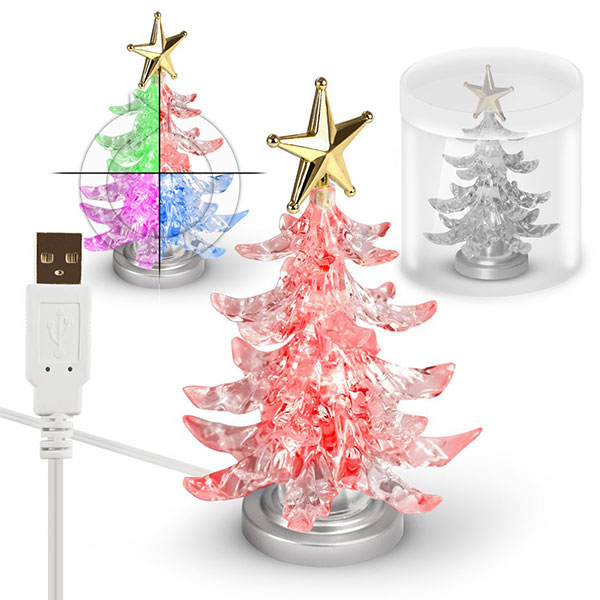 USB Powered Christmas tree is a good gift and glowing decoration for Christmas Day. High qualit and tree Height is 11cm and the Cable Length is120cm.